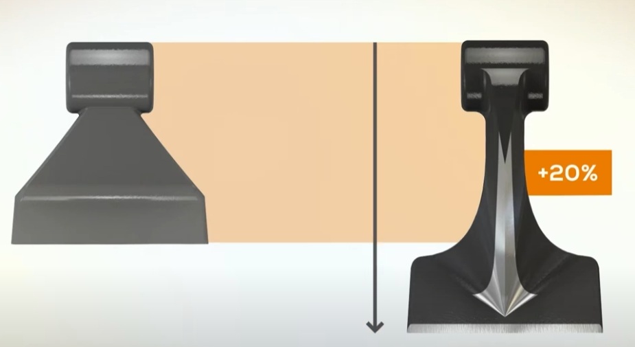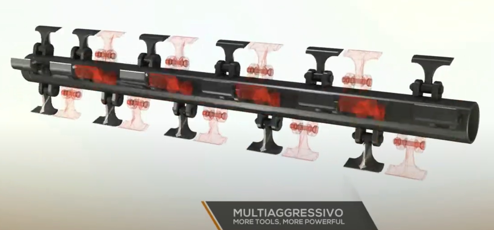 1. O πολύ-επιθετικός (Multiaggressive rotors ) ρότορας περιστροφής που φοράει 70% περισσότερα σφυριά δύο κόψεων από έναν κοινό ρότορα.